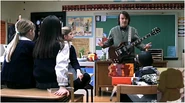 Unemployed Dewey Finn (Jack Black) is fired from his rock band No Vacancy. His roommate Ned Schneebly (Mike White), is pressured by his girlfriend, Patty Di Marco (Sarah Silverman), to evict Dewey unless he starts paying rent. Dewey answers a phone call intended for Ned from Rosalie Mullins (Joan Cusack), the principal of a prestigious prep school, offering Ned a job. Dewey impersonates Ned and takes the substitute teacher position for a fourth-grade class. When Dewey, although uninterested in teaching, overhears their music class, he realizes they have musical talent. He sets the class a school project: form a band and win the Battle of the Bands, where No Vacancy are competing. As part of their training, Dewey teaches the history of rock music. He befriends Principal Mullins by playing her favorite song "Edge of Seventeen" by Stevie Nicks on a jukebox. The class auditions for the Battle of the Bands, but are rejected for lateness. With the help of the band manager, pupil Summer Hathaway (Miranda Cosgrove), Dewey persuades the managers to let the students perform by claiming the students are orphans with a rare blood disease. Ned receives a paycheck from the school and realizes that Dewey has been impersonating him. At that evening's parent-teacher conference, the suspicious parents question Dewey about their children's new interest in rock music. Ned and Patty appear with the police and expose Dewey. Dewey admits everything and is fired. After an argument with Patty that results in her leaving the house that night, Ned admits that he still misses playing music and thinks that it's time that Dewey moved out. The next day, the class decides to go ahead with the Battle of the Bands performance and recruit the sacked Dewey to lead them. Mullins is pressured all day with numerous complaints from all the parents until she leaves the room and sees a teacher searching for the kids. She realizes that the kids have gone missing. Mullins and the parents go to the venue to take their children back. Ned and Patty see the Class and Dewey getting ready to go to the venue and Patty threatens to call the police again. But Ned decides to go to the concert and closes the door on Patty in the middle of her rant. The class band, the School of Rock, plays an original song written by their lead guitarist, Zack, impressing the audience. Despite winning over the crowd, School of Rock loses to No Vacancy. However, the winning acceptance is booed at and the crowd demands School of Rock come on for an encore. Sometime later, Dewey opens the School of Rock, an after-school program where he continues to coach the class and Ned teaches beginner guitar players. The band plays during the end credits, and they even break the fourth wall by singing "The movie is over, but we're still on screen".